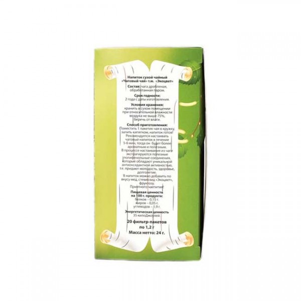 Čaj lze pít namísto obvyklého černého nebo zeleného čaje denně. Chuť, vůně a barva není v žádném případě horší než tradiční čaje jakéhokoli druhu. A co je nejdůležitější - Sibiřský Čaga čaj neobsahuje kofein, který ničí náš nervový systém! Ve velkém množství jsou však přítomny vitaminy, glykosidy, alkaloidy, saponiny, enzymy, organické kyseliny, pektiny a další biologicky aktivní látky, které mají příznivý účinek na lidské tělo.